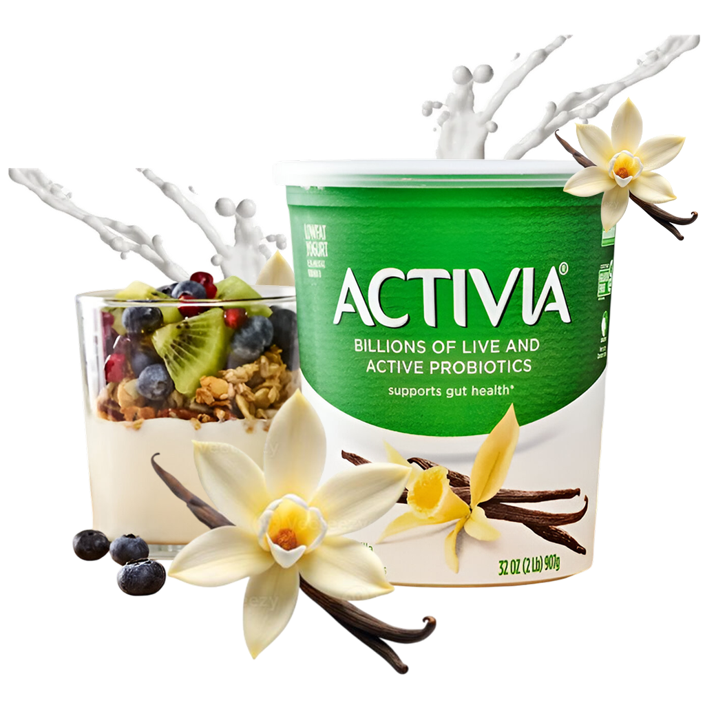 Activia is a yoghurt product that contains a special probiotic known as Bifidus Actiregularis, which helps improve digestive health when consumed regularly as part of a balanced diet.