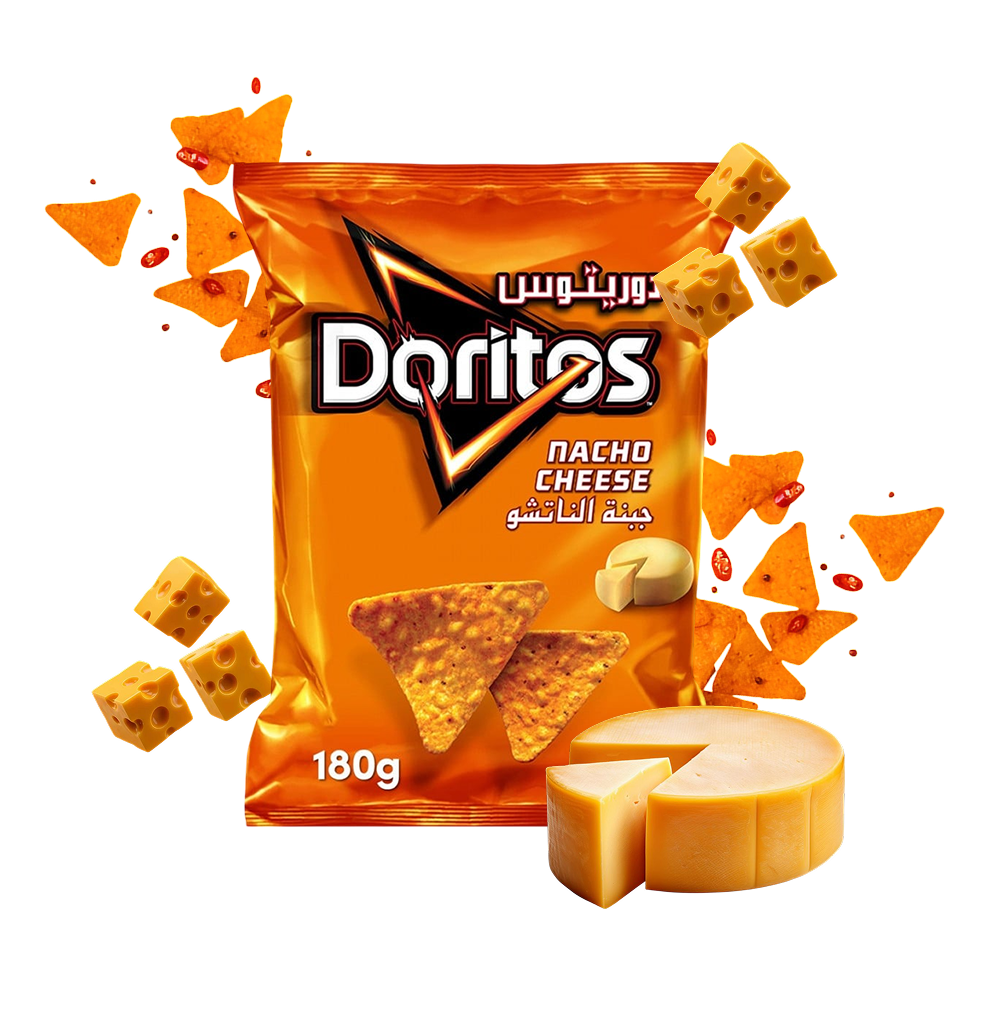 Doritos is a global brand famous for its crispy, triangular-shaped corn chips. It is characterised by its strong and distinctive flavours that appeal to young people and those who love bold tastes.