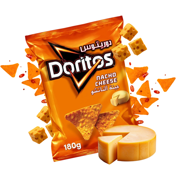 Doritos is a global brand famous for its crispy, triangular-shaped corn chips. It is characterised by its strong and distinctive flavours that appeal to young people and those who love bold tastes.