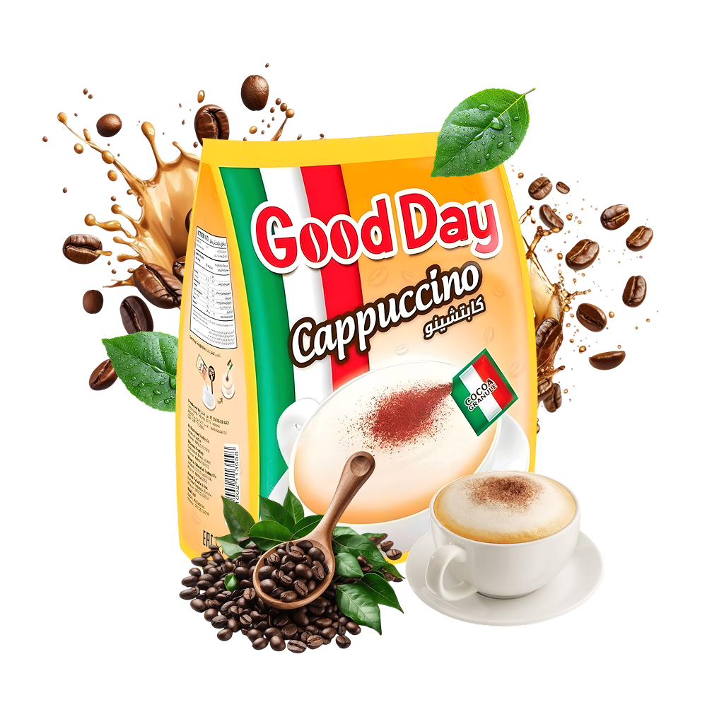 Good Day Cappuccino is an instant coffee drink that combines the taste of espresso, milk, and creamy foam. It is easy to prepare and has a rich taste that is perfect for cappuccino lovers.