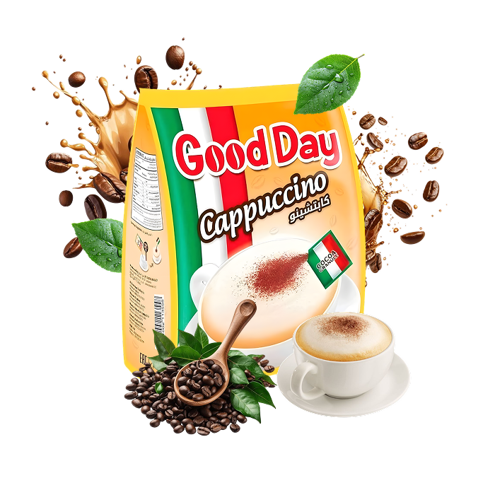 Good Day Cappuccino is an instant coffee drink that combines the taste of espresso, milk, and creamy foam. It is easy to prepare and has a rich taste that is perfect for cappuccino lovers.