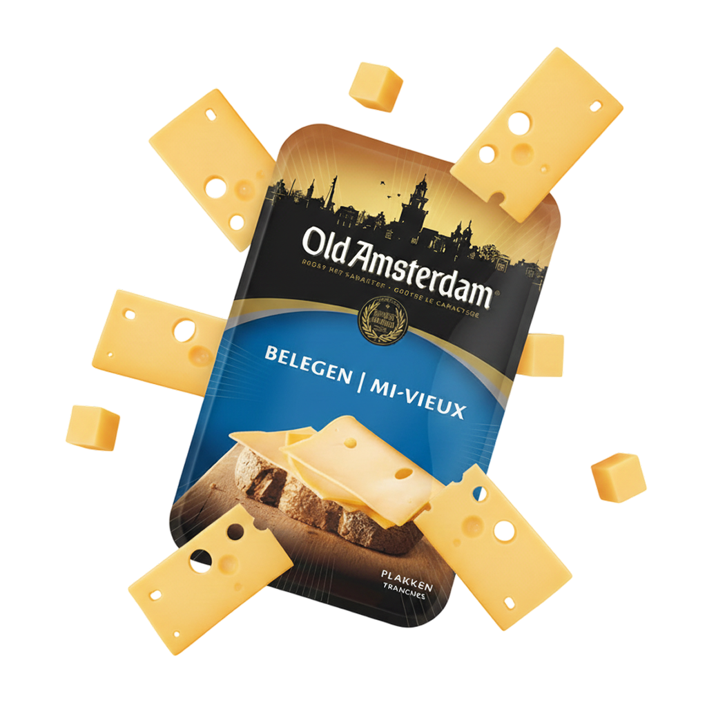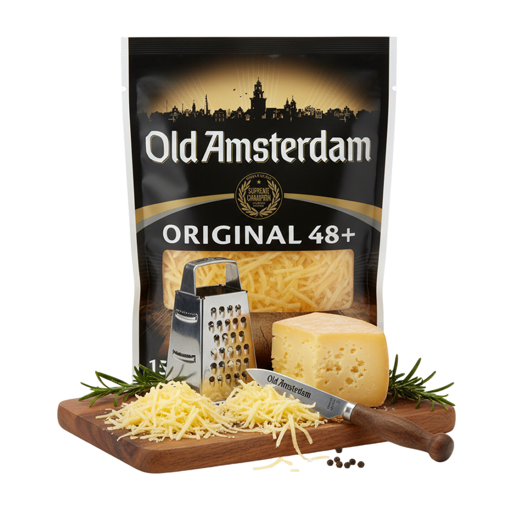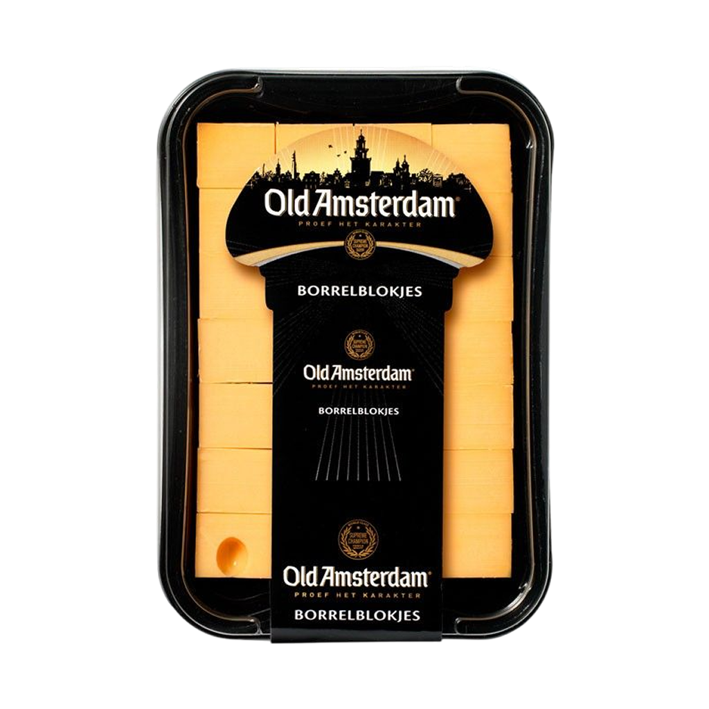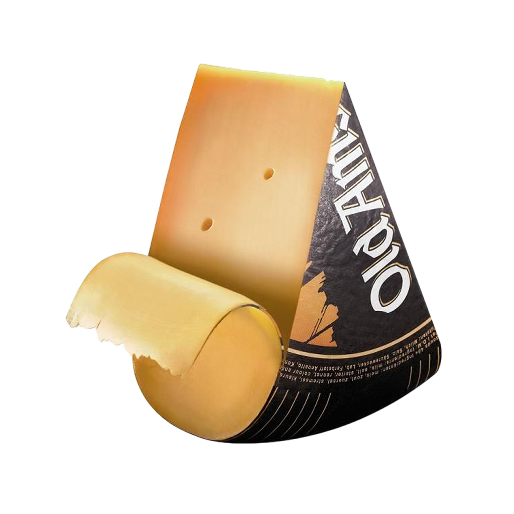 Old Amsterdam is a distinguished brand of aged Dutch Gouda cheese, renowned for its exceptional quality and rich, intense flavor. It is made in the Netherlands from full-fat cow’s milk and undergoes a long maturation process of 12 to 18 months, giving it a distinctive character and deep taste. It is considered one of the most famous and popular European cheeses among cheese lovers worldwide.